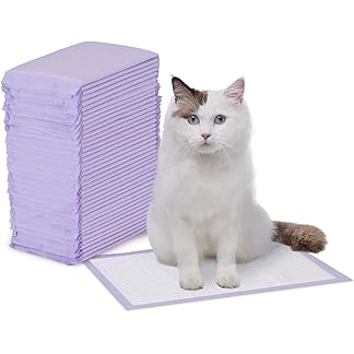 Amazon Basics Cat Litters Pee Pads, 40 Count, Universal Fit for Litter Box, Odor Control with Fresh Scent, Purple and White