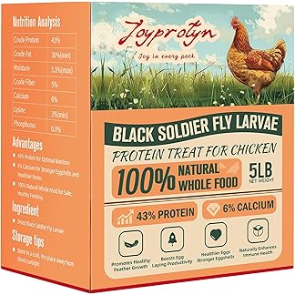 Joyprotyn 5LB Non-GMO Dried Black Soldier Fly Larvae for Chicken – 85X More Calcium Grubs Than Mealworms for Strong Eggshells & Healthy Growth – High Protein for Chickens, Birds, Ducks, Geese & Pets$23.99 (as of October 31, 2025 18:14 GMT +03:00 – More info) Add to Cart
