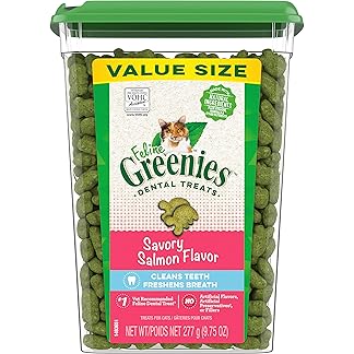 FELINE GREENIES Adult Dental Cat Treats, Savory Salmon Flavor, 9.75 oz. Tub$10.98 (as of July 28, 2023 10:09 GMT +03:00 – More info) Add to Cart