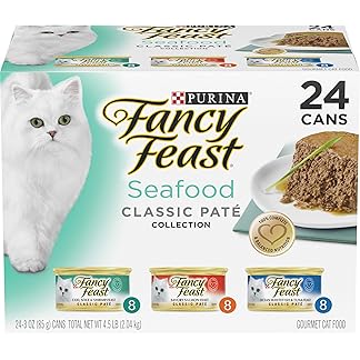 Purina Fancy Feast Seafood Classic Pate Collection Grain Free Wet Cat Food Variety Pack – (Pack of 24) 3 oz. Cans$14.88 (as of February 24, 2024 12:36 GMT +03:00 – More info) Add to Cart