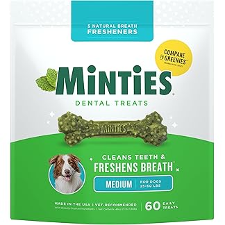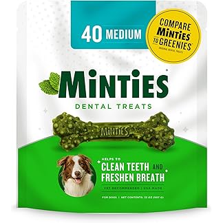 Minties Dental Chews for Dogs, 40 Count, Vet-Recommended Mint-Flavored Dental Treats for Medium Dogs 25-50 lbs, Dental Bones Clean Teeth, Fight Bad Breath, and Removes Plaque and Tartar$16.47 (as of June 7, 2025 01:48 GMT +03:00 – More info) Add to Cart