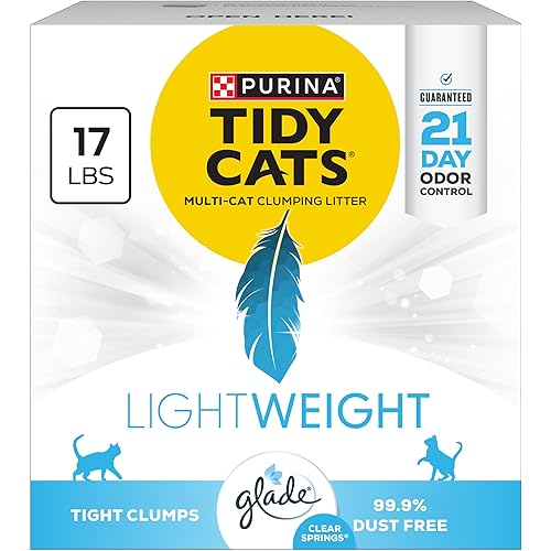 Purina Tidy Cats LightWeight With Glade Clear Springs Multi-Cat, Clumping, Low Dust, Scented Cat litter – 17 lb. Box