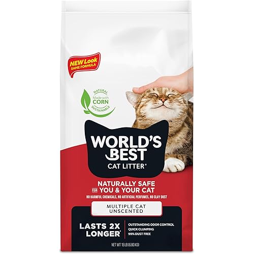WORLD’S BEST CAT LITTER Multiple Cat Unscented, 15-Pounds – Natural Ingredients, Quick Clumping, Flushable, 99% Dust Free & Made in USA – Long-Lasting Odor Control & Easy Scooping