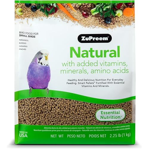 4655816 reviews for ZuPreem Natural Bird Food, Bird Feed Pellets for Parakeets, Budgies, Parrotlets, & Doves, ZuPreem Core Nutrition, Made in USA, Added Vitamins, Parakeet Food, Budgie Feed, (Small, 2.25 lb Bag)