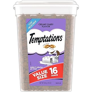 TEMPTATIONS Classic Crunchy and Soft Cat Treats Creamy Dairy Flavor, 16 oz. Tub$8.48 (as of February 1, 2024 23:35 GMT +03:00 – More info) Add to Cart