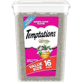 TEMPTATIONS Classic Crunchy and Soft Cat Treats Blissful Catnip Flavor, 16 oz. Tub$8.48 (as of January 18, 2024 23:53 GMT +03:00 – More info) Add to Cart