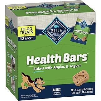 Blue Buffalo Health Bars Mini Natural Crunchy Dog Treats to-GO, Mini Biscuits, Apple & Yogurt 1-oz Bags (Pack of 12)$4.98 (as of August 25, 2022 09:04 GMT +03:00 – More info) Add to Cart