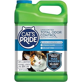 Cat’s Pride Max Power: Total Odor Control – Up to 10 Days of Powerful Odor Control – Strong Clumping – Hypoallergenic – 99% Dust Free – Multi-Cat Litter, Unscented, 15 Pounds$12.94 (as of October 27, 2023 09:12 GMT +03:00 – More info) Add to Cart