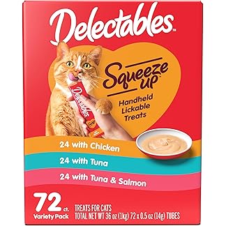 Delectables Squeeze Up Handheld Lickable Treats, Chicken, (Tuna and Tuna and Salmon) 54 Count$27.62 (as of June 20, 2025 16:26 GMT +03:00 – More info) Add to Cart